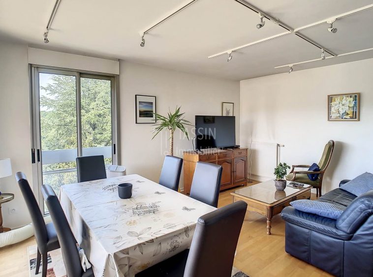 L’agence TASSIN IMMOBILIER vous propose à Charbonnières-les-Bains, à 5 mn du centre, dans un quartier résidentiel, beau T3 de 82 m2 dans résidence de standing et idéalement située en proximité immédiate des commerces, marché, transports et services. Situé au 3ème étage sur 4, cet appartement se compose, d’une entrée avec grand placard, d’un vaste séjour qui donne sur une belle terrasse offrant une vue dégagée, une cuisine aménagée avec grand cellier.