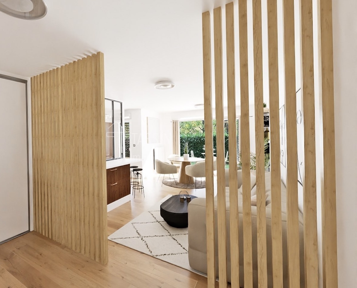 A mi-chemin entre la Mairie de Tassin et Alai, proche des transports, dans une résidence récente, ce rez-de-jardin de 84m2 se compose d’une entrée avec placards, d’une pièce de vie de plus de 30m2 avec cuisine ouverte et équipée donnant sur un petit jardin au calme exposé Ouest, d’un dégagement qui dessert 3 chambres, un dressing, une salle de bains, et un WC séparé. Possibilité d’acquérir un garage en sus au prix de 19 000€. Honoraires charge vendeur.