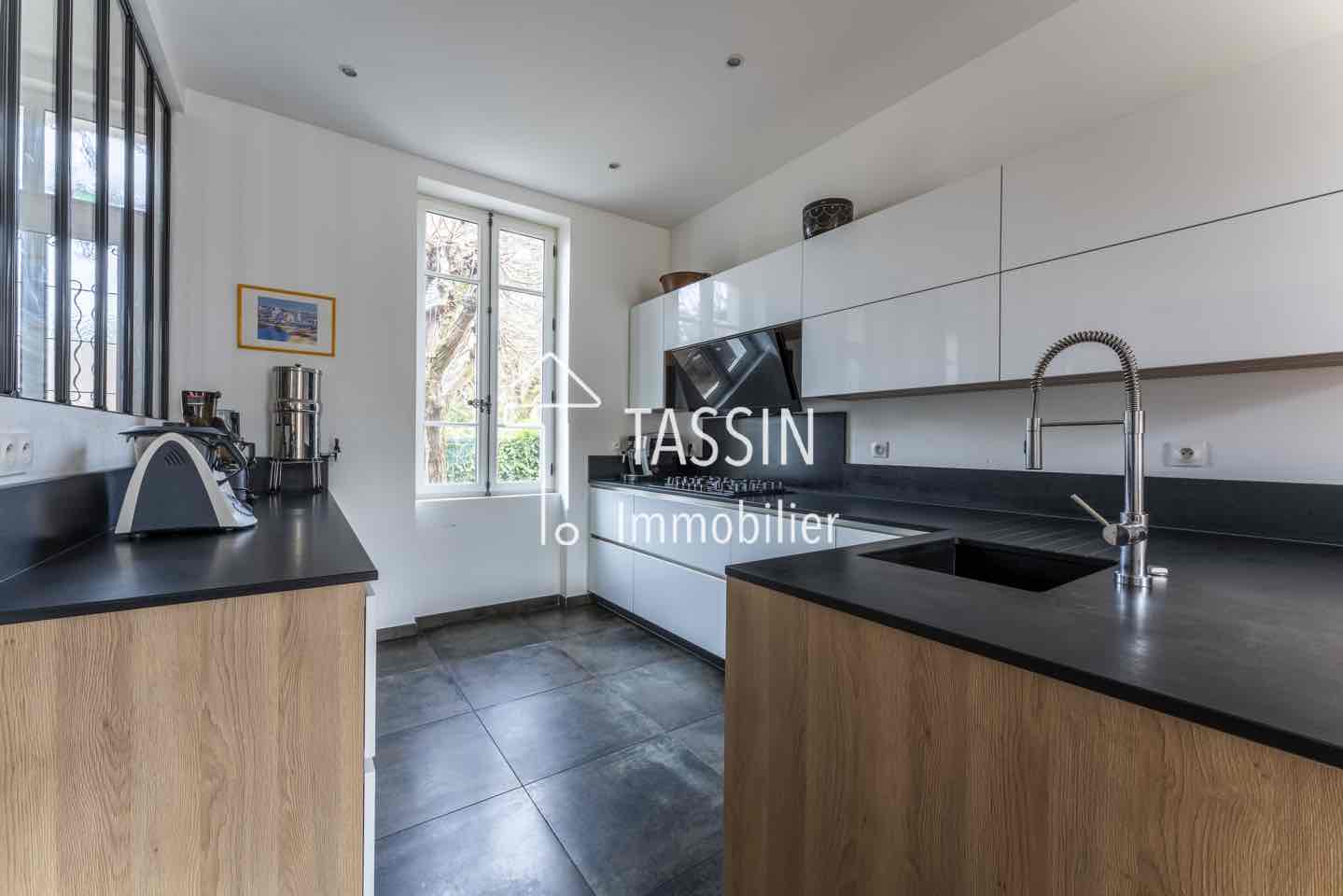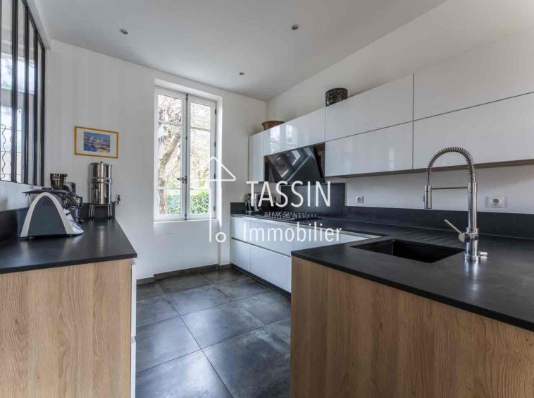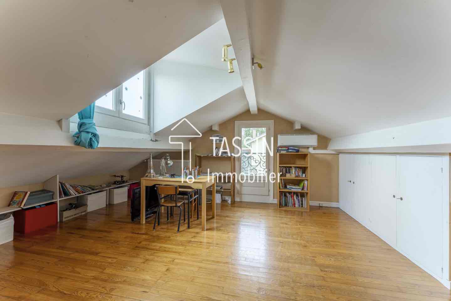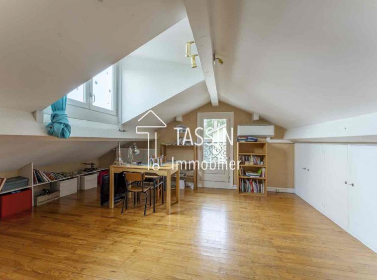 Lyon 5, nichée au fond d’une impasse, venez découvrir cette maison de ville de 1914 rénovée d’environ 145m2, remplie de charme, qui se compose d’un vaste hall d’entrée, d’un séjour/salle à manger avec cheminée, lumineux exposé Est/Ouest, d’une belle cuisine entièrement équipée avec son coin repas en accès direct sur la terrasse et le jardin d’environ 350m2, d’une chambre et des toilettes séparés. Un dégagement dessert la chambre parentale avec de grands placards, une salle de bains avec douche et une chambre. A l’étage, un palier amène à 2 chambres mansardées, un wc séparé et une petite salle de bains. Le plus, un sous-sol comprenant une pièce de rangement, une buanderie, une cave et un espace bureau/salle de jeu de 26m2 avec hauteur de 1,95m.