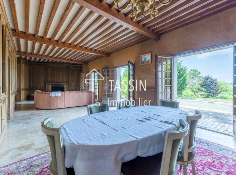 Sur la commune de Dommartin, dans un environnement verdoyant, au calme, cette maison de 263m² de plain-pied, offre un potentiel exceptionnel sur un grand terrain de 7547m² (non constructible). Une vaste entrée avec belle hauteur amène d’un côté à une spacieuse pièce de vie de plus de 60m2 avec cheminée et vue dégagée, à une grande cuisine séparée l’ensemble en accès direct avec la terrasse et le parc, à un bureau, et à un wc séparé. L’autre partie de la maison se compose d’un couloir qui dessert 4 chambres avec placards, une grande salle de bains, une salle de douche, un dressing et un WC séparé. Un sous-sol qui comprend un wc séparé avec point d’eau, une chaufferie, une belle pièce de 47m2 qui peut devenir un studio indépendant ou idéal pour une profession libérale, et un garage double. Cette propriété est idéale pour une famille en quête d’espace et de tranquillité. Des travaux de rafraîchissement permettront de révéler tout le potentiel de cette propriété. Ne tardez pas à découvrir ce bien rare, libre de tout occupant, et à imaginer votre futur chez vous !