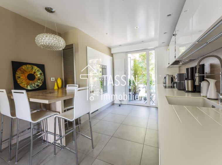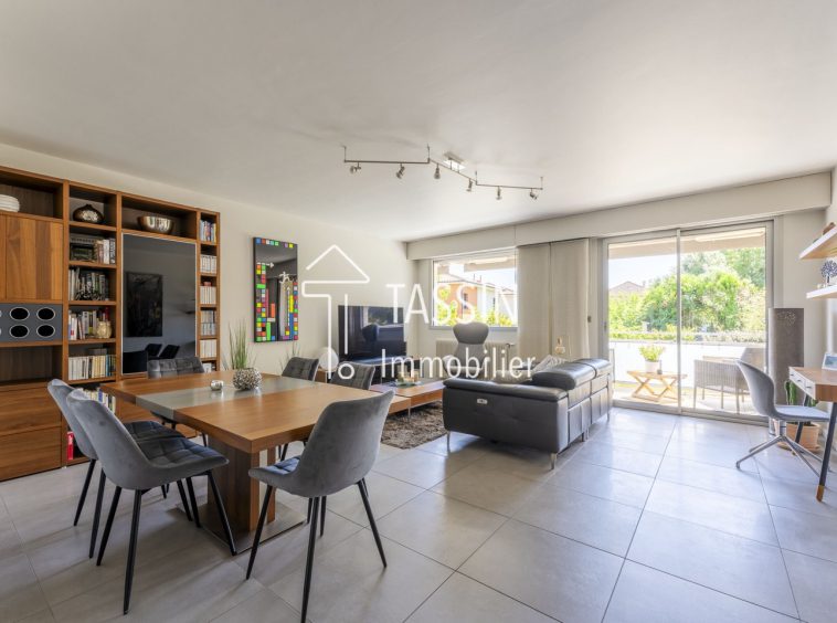 A Tassin, coup de coeur pour cet appartement traversant de 99m², exposé sud, entièrement rénové, qui vous séduira par sa luminosité et son agencement optimisé. Dans une petite résidence de standing, fermée, il se situe dans un écrin de verdure et proche des commodités. Il offre un cadre de vie paisible et sécurisé. L’appartement se compose d’un séjour donnant sur un extérieur avec vue sur le parc, d’une cuisine ouverte, équipée avec balcon, un dégagement dessert trois chambres avec placards, une salle de bains et un WC séparé. Une cave, un garage box fermé et une place privative complètent ce bien. La rénovation énergétique de la résidence a été réalisée, le parc a été paysagé, aucuns travaux à prévoir. Ne tardez pas à découvrir ce bien rare sur le secteur !
