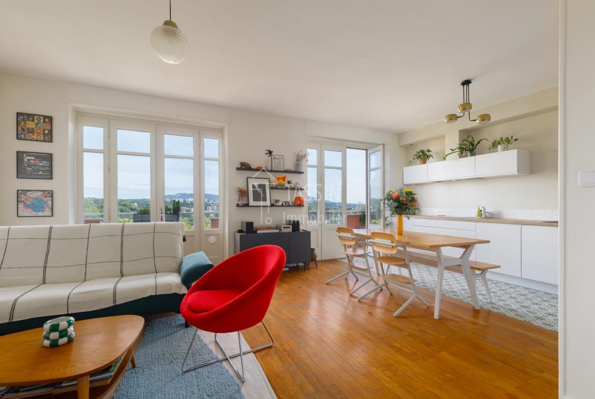 Retour à la vente pour cet appartement coup de coeur, situé au 7ème et dernier étage, à quelques pas de l’Horloge à Tassin-la-Demi-Lune. Ce bien de 83m² traversant Est/ Ouest entièrement rénové, offre une très belle vue dégagée sur Lyon. Il comprend une entrée équipée de placards et d’une jolie verrière, donnant accès à une pièce de vie de 30m2, avec un balcon où vous pourrez déjeuner tout en profitant d’une vue très dégagée, et une jolie cuisine, le dégagement dessert 3 belles chambres, une salle d’eau moderne, un wc séparé avec son espace buanderie très bien aménagé. Le chauffage individuel électrique et les huisseries en double vitrage assurent un confort optimal. Une cave en sous-sol complète ce bien. La résidence bénéficie d’un accès sécurisé avec ascenseur et interphone, et places de stationnement libres. A juste 200 m de l’Horloge, ce bien est idéal pour ceux qui recherchent la proximité des commerces, écoles et transports. Ne tardez pas à découvrir ce bien rare sur le secteur !